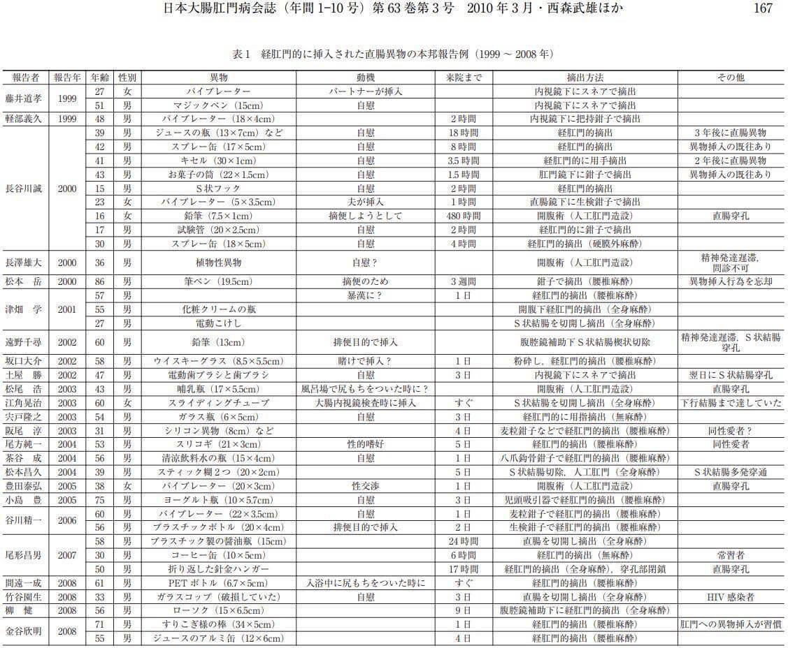 よく見ると女はパートナーによる挿入か医療・介護で入れたものが抜けなくなったものだけだ