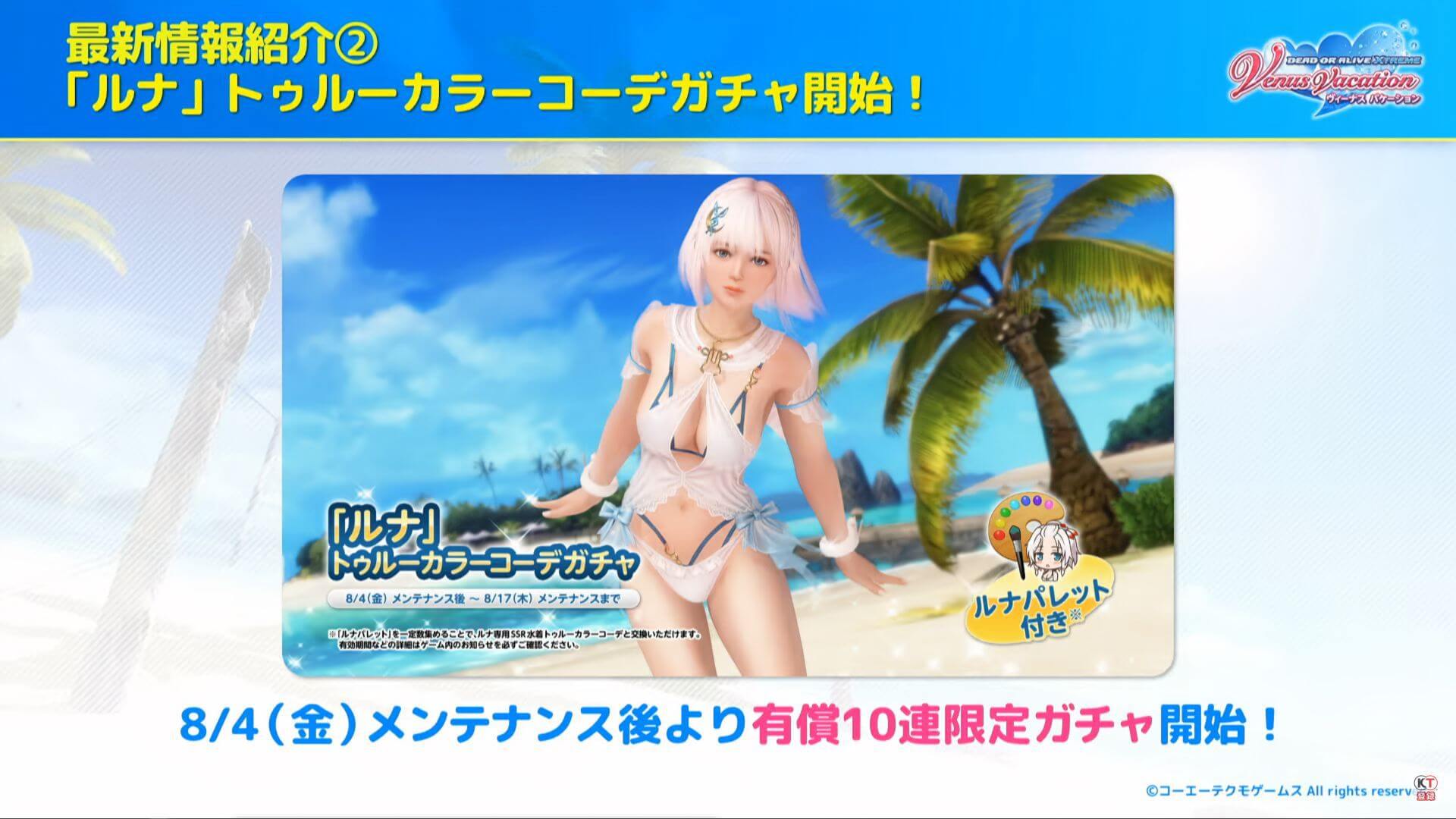 「DOAXVV」ルナのトゥルー水着プレシャス・シャイン。8/4登場。