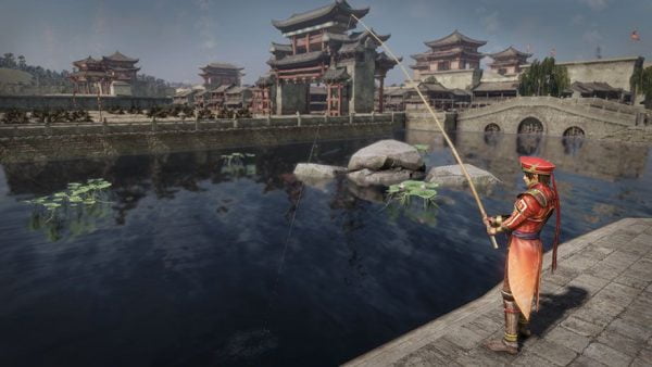 街中にあるお堀で釣りをすると、素材や古銭が手に入ることがある。